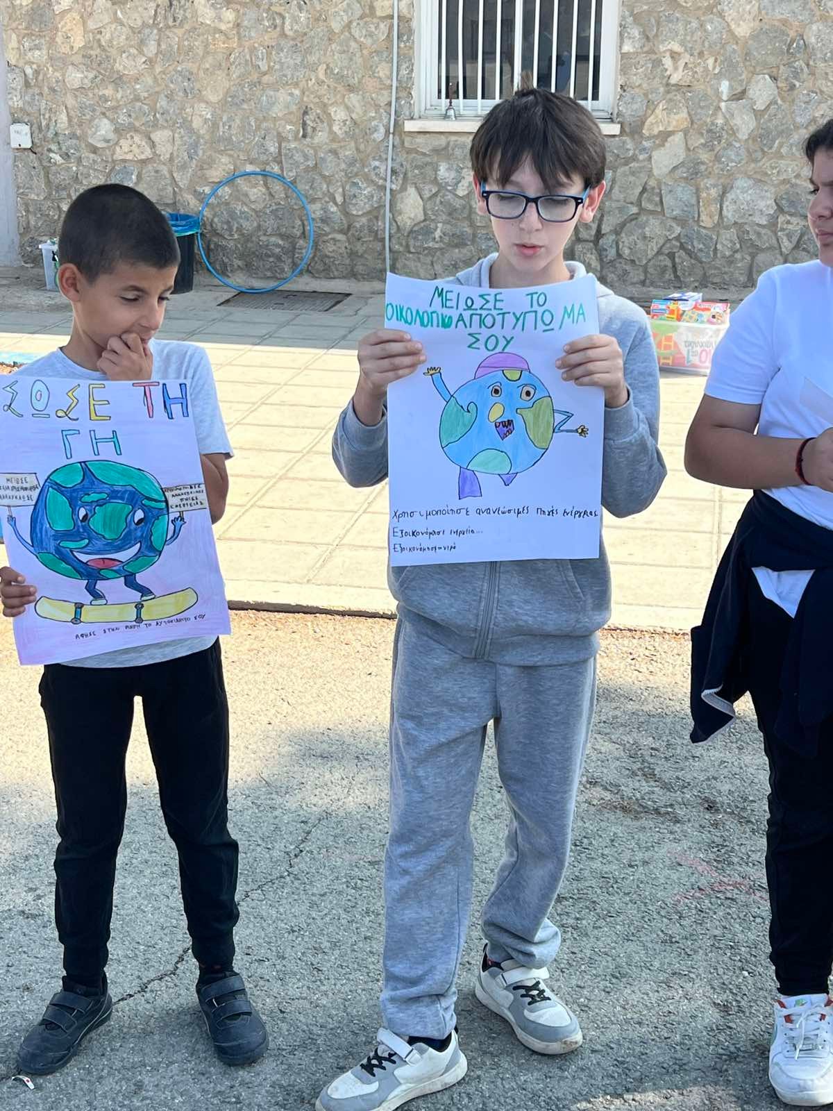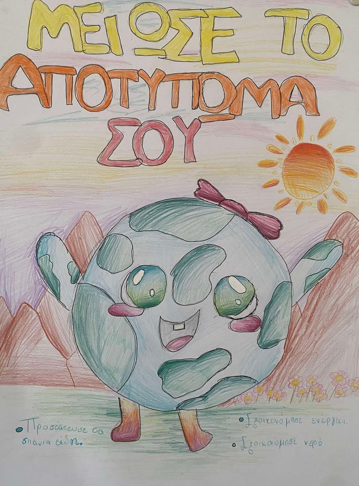 Οι μαθητές των Ε και Στ Τάξεων δημιούργησαν αφίσες στο μάθημα της Περιβαλλοντικής Αγωγής με σκοπό να μας ευαισθητοποιήσουν για το οικολογικό αποτύπωμα και την ανάγκη να προστατεύουμε το περιβάλλον.
