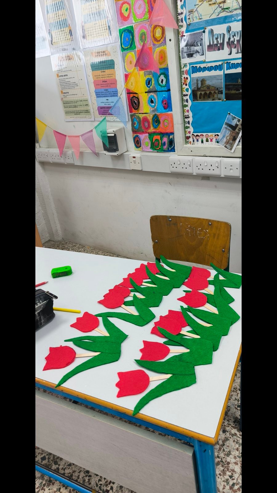 Οι μαθητές και οι μαθήτριες του Ολοημέρου κατασκεύασαν τουλίπες για διακόσμηση της πινακίδας, στο πλαίσιο της βράβευσης του Σχολείου μας με χρυσό μετάλιο. Η πινακίδα θα μεταφερθεί στον χώρο που όρισε το Υπουργείο Παιδείας για την παρουσίαση που θα γίνει από τους μαθητές και μαθήτριες μας.