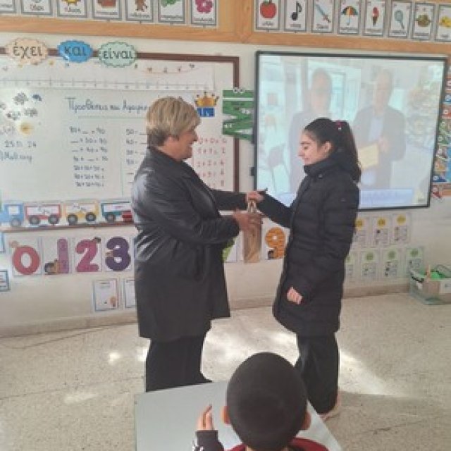 Στο πλαίσιο του στόχου της Φιλαναγνωσίας στις 27 Ιανουαρίου 2025, επισκέφθηκε το σχολείο μας η κτηνιατρική Λειτουργός Νάντια Καλλή στο πλαίσιο του προγράμματος διαφώτισης για την ευημερία των ζώων και μας παρουσίασε το βιβλίο " Μύθοι και Αλήθειες για τα Ζώα Συντροφιάς " και δόθηκε δωρεάν σε κάθε παιδί του σχολείου μας.