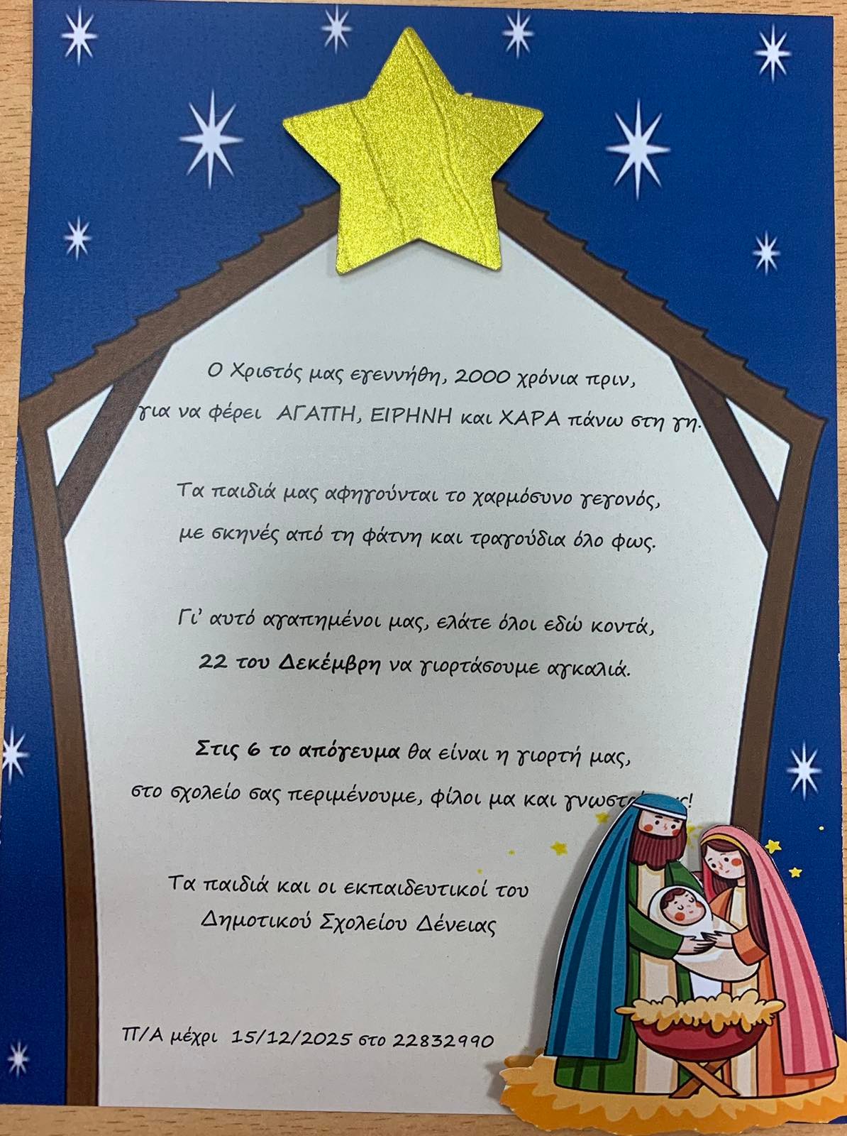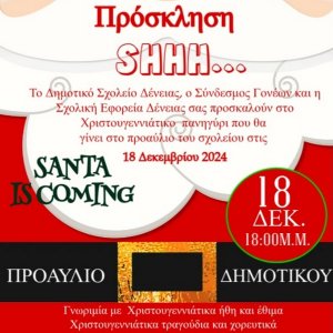 Το Δημοτικό Σχολειό Δένειας σας προσκαλεί στη Χριστουγεννιάτικη γιορτή στις 22 Δεκεμβρίου 2025 η ώρα 18:00! Σας περιμένουμε!