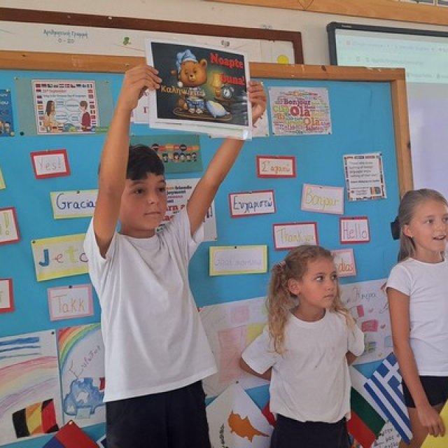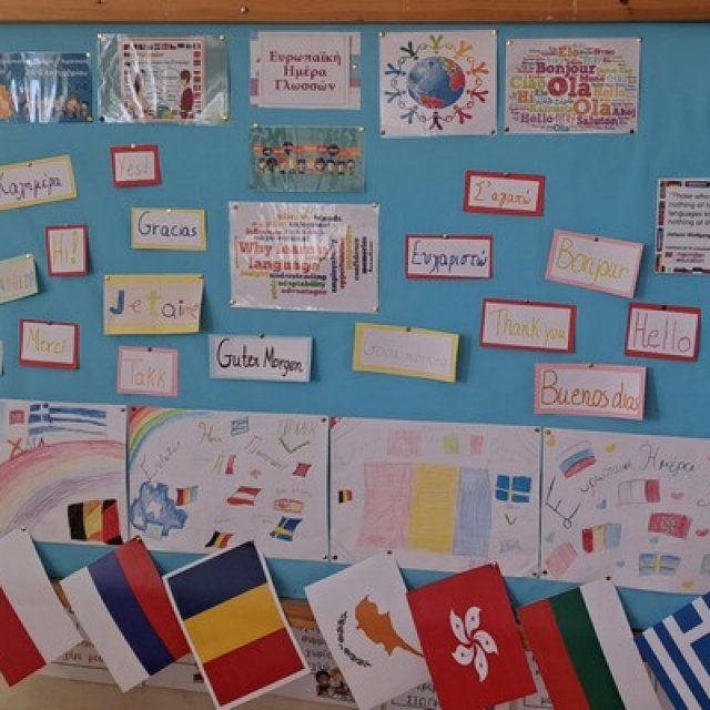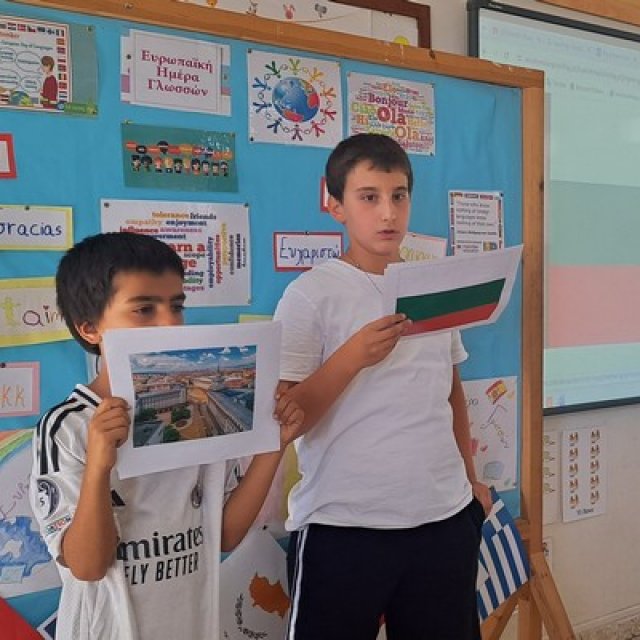 26/9 Ευρωπαϊκή Ημέρα Γλωσσών και το σχολείο μας τίμησε την ημέρα αυτή με παρουσιάσεις παιδιών όπου οι γονείς τους έχουν καταγωγή από άλλες χώρες. Τα παιδιά μας παρουσίασαν τις χώρες καταγωγής τους, μας έμαθαν χαιρετισμούς, τα χρώματα και τους αριθμούς στις μητρικές τους γλώσσες. Ακόμη μας τραγούδησαν, μας παρουσίασαν παραδοσιακά εδέσματα και έφτιαξαν ζωγραφιές για τη μέρα αυτή.