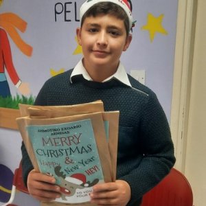 Οι μαθητές του Σχολείου μας ετοίμασαν παραμύθια και τα έστειλαν στα παιδιά του Παιδογκολογικού Τμήματος στο Μακάρειο Νοσοκομείο. Για να ανταποδώσουν την πράξη των μαθητών, έστειλαν την ευχετήρια κάρτα.