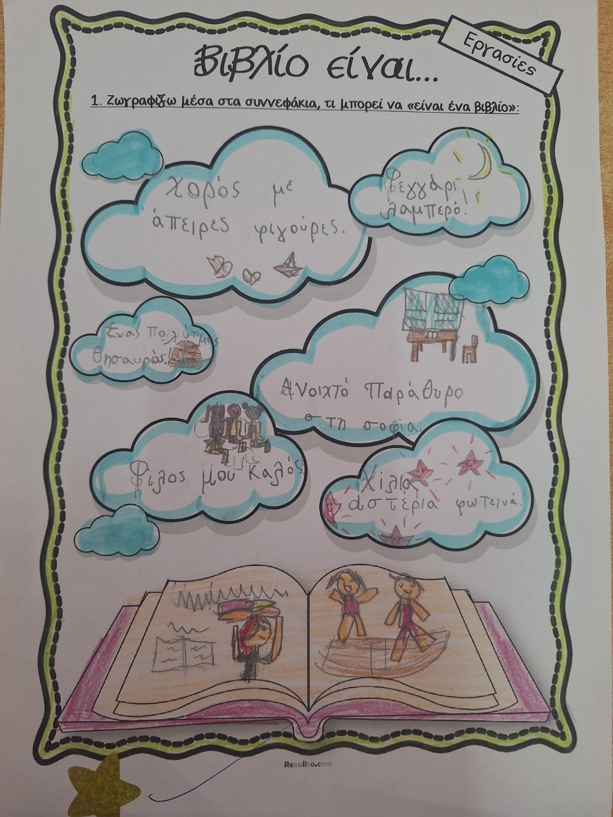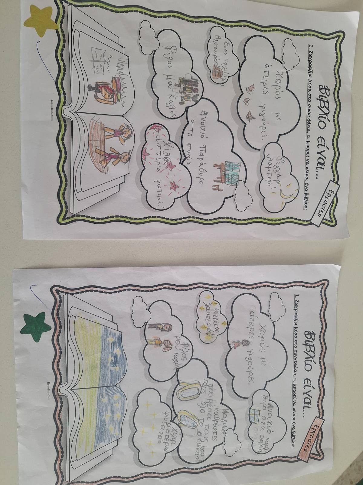 Α) Οι μαθητές και οι μαθήτριες της Α'-Β' Τάξης, στο πλαίσιο φιλαναγνωσίας έφτιαξαν το δικό τους βιβλίο, την δική τους κορώνα και ντόμινο με βιβλία!