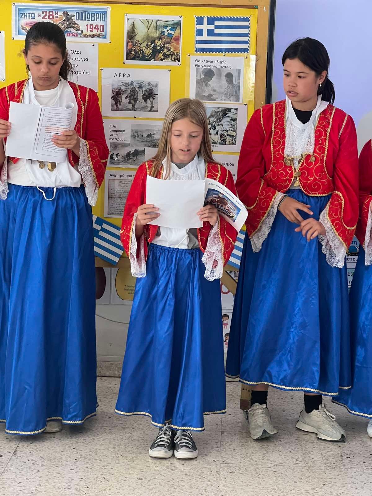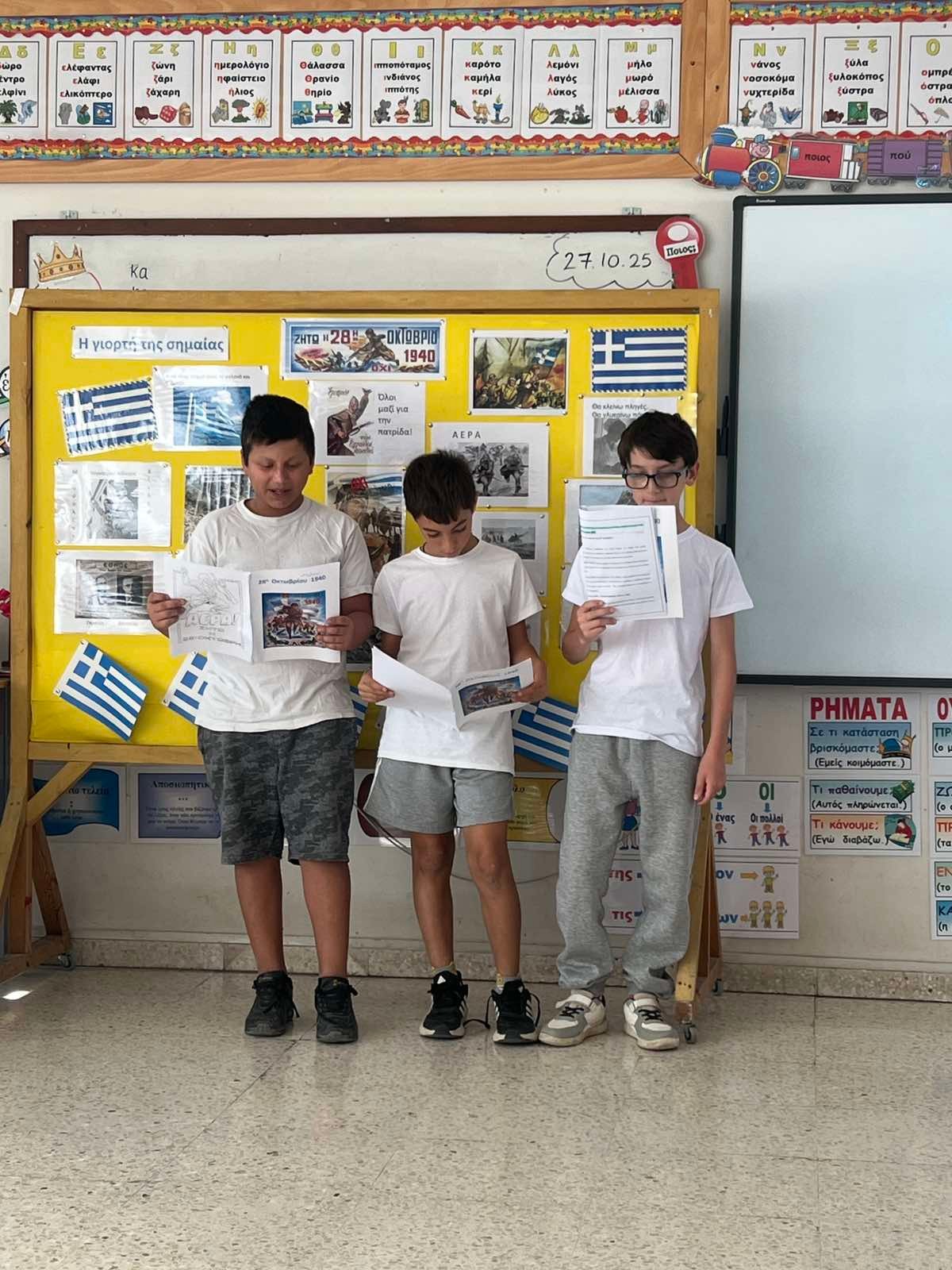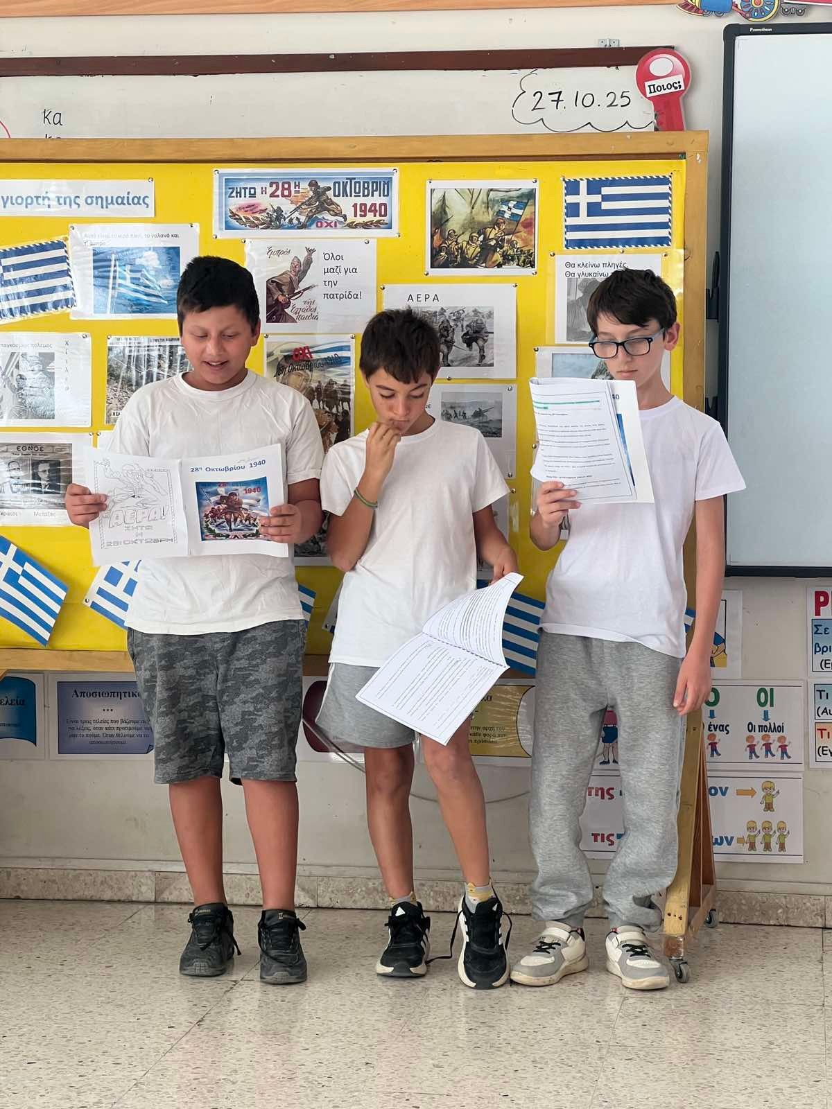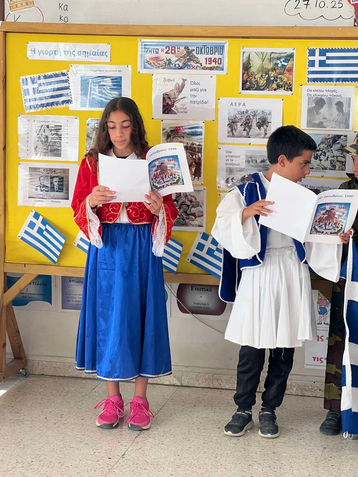 Οι μαθητές του σχολείου μας, μέσα από ποιήματα, τραγούδια, θεατρικά δρώμενα και παρουσιάσεις, ζωντανεύουν τις αξίες της ενότητας, του θάρρους και της ειρήνης. Η σημερινή εκδήλωση δεν είναι απλώς μια αναδρομή στο παρελθόν, αλλά μια ευκαιρία να θυμηθούμε ότι η ελευθερία και η δημοκρατία χρειάζονται σεβασμό και διαρκή προσπάθεια.