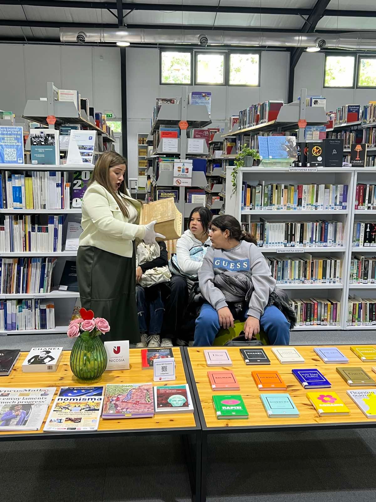 Όλοι οι μαθητές και οι μαθήτριες, επισκέφθηκαν τη βιβλιοθήκη του Πανεπιστημίου Λευκωσίας για ξανάγηση. Υπήρχε παιδικό τμήμα βιβλιοθήκης, στο οποίο συμμετείχαν οι μαθητές και οι μαθήτριες των μικρότερων τάξεων. Μάλιστα, μπορούσαν να δουν από κοντά το Τμήμα Εφημερίδων. Στη συνέχεια, όλα τα παιδιά είχαν την ευκαιρία να δουν από κοντά το πιο παλιό βιβλίο της βιβλιοθήκης.